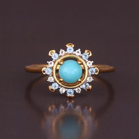 Arizona Turquoise Ring with True Blue Topaz in Gold Plated Sterling Silver