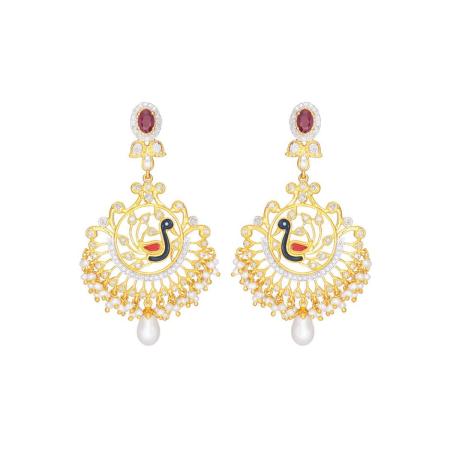 Rajwada Earrings with 1 Ct. Diamonds & Ruby in Gold Plated 925 Silver