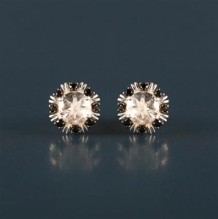 White Quartz Earrings with Black Spinel in Sterling Silver