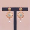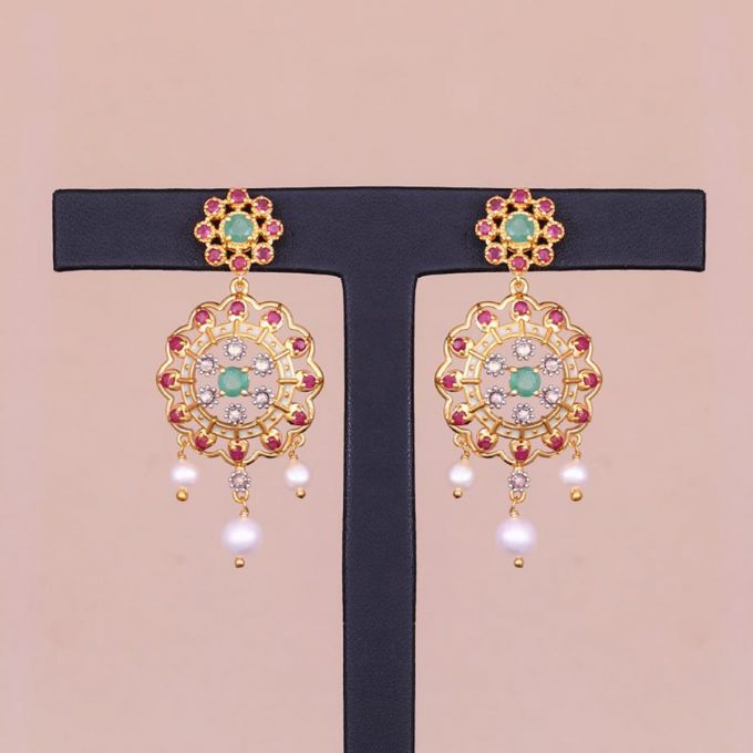 0.50 Ct. Diamond Earrings with Ruby, Emerald & Pearls in Gold Plated 925 Silver