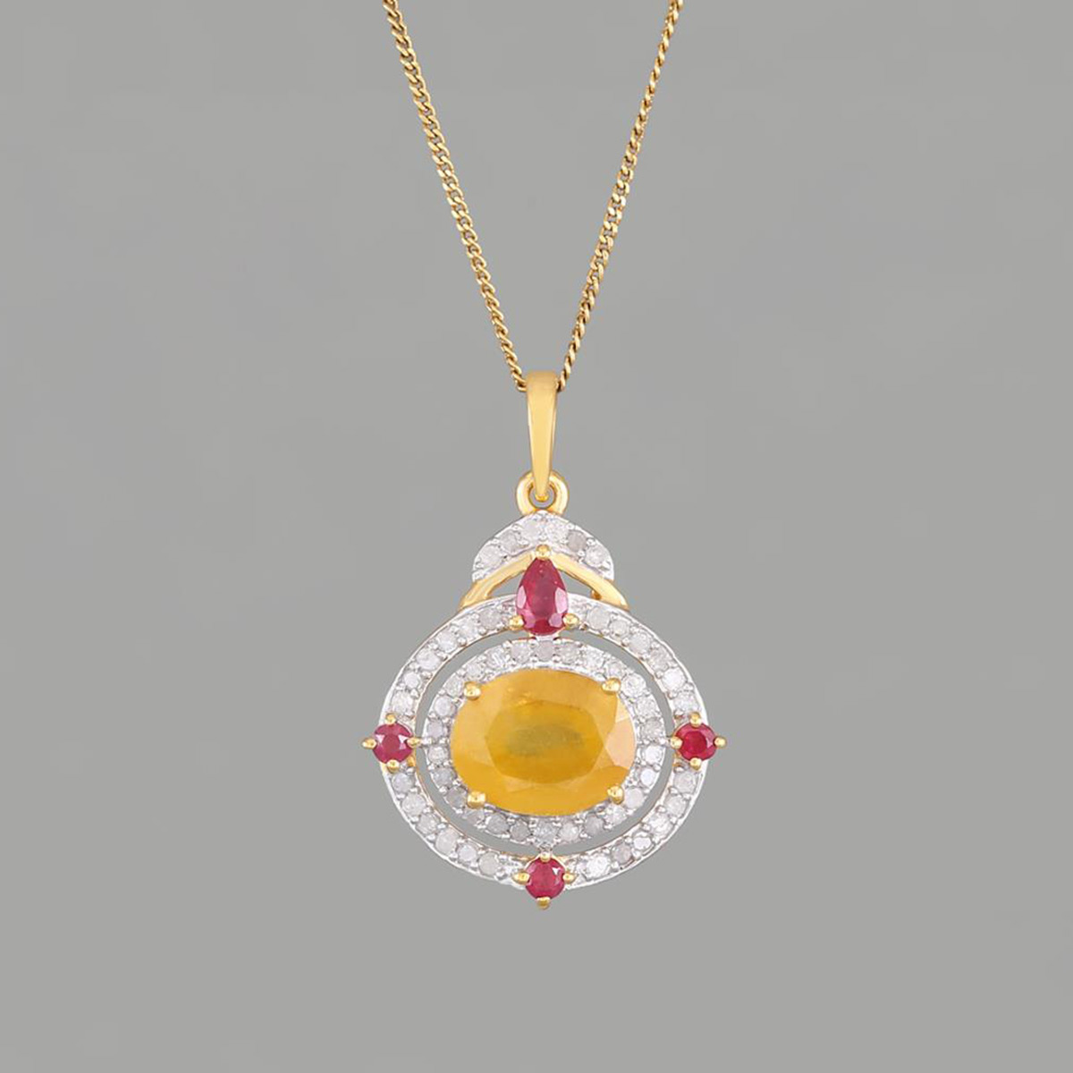 0.50 Ct. Diamond Pendant with Yellow Sapphire & Ruby in G.P. Sterling Silver
