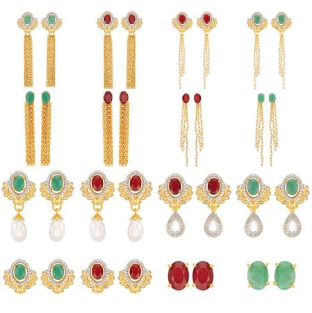 16 style Interchangeable Diamond Earrings with Ruby & Emerald in G.P.925 Silver