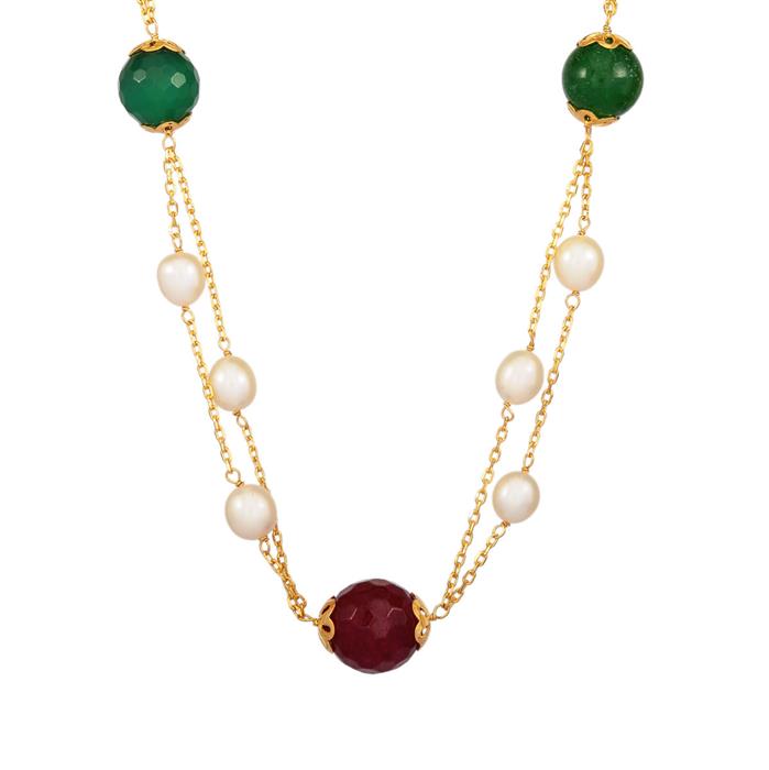 53.34cm (21) Necklace with Red Quartz & Green Quartz in Gold Plated Sterling Silver