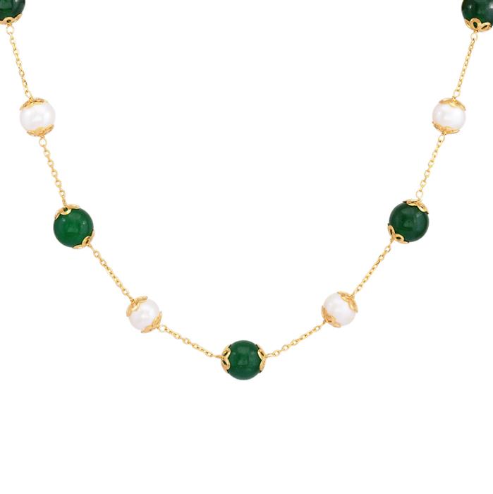 55.88cm (22) Beaded Necklace with Green Onyx & Cultured Pearl in G.P. 925 Silver