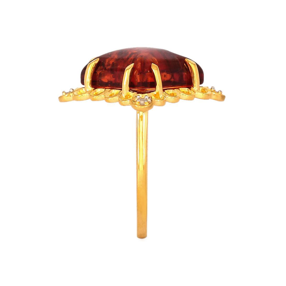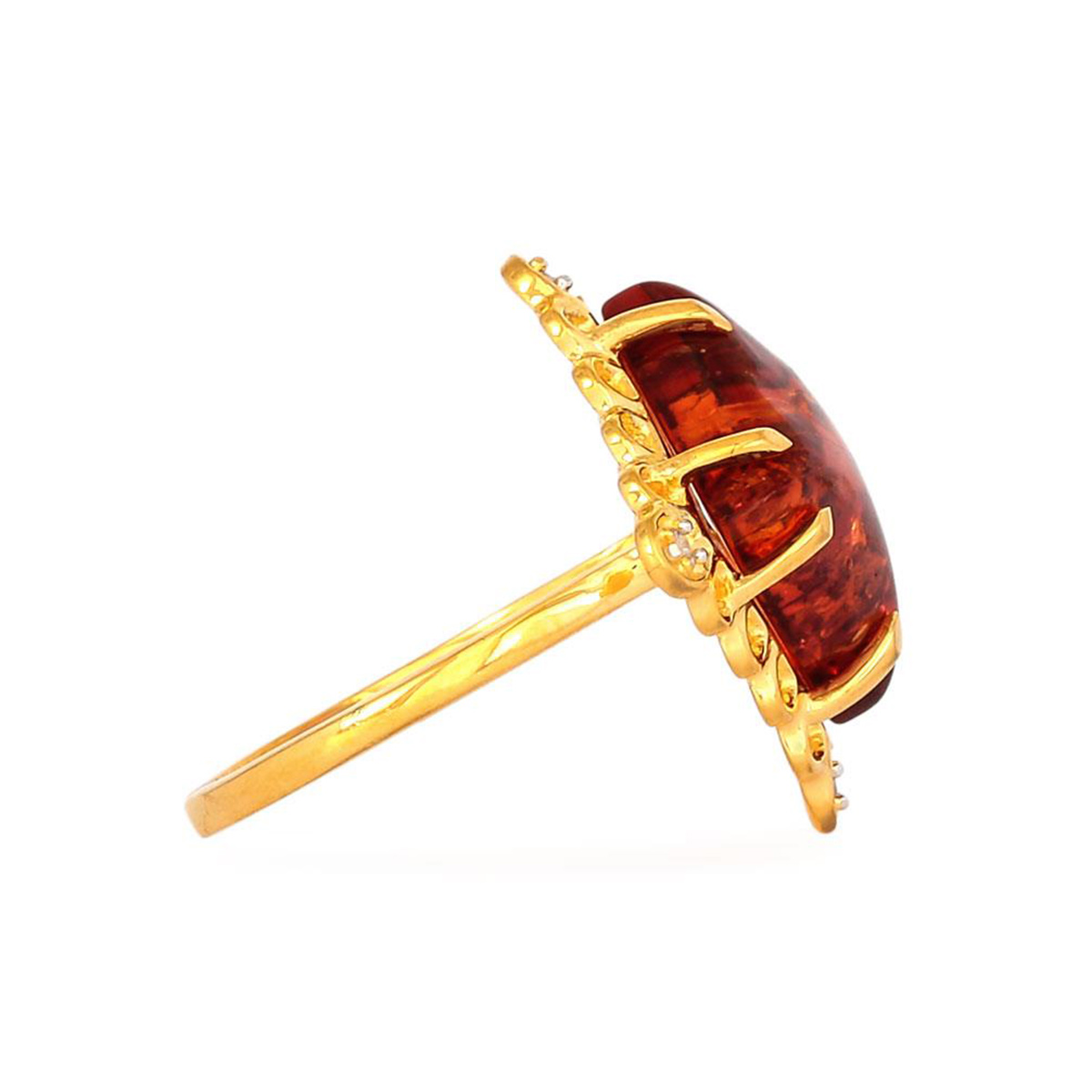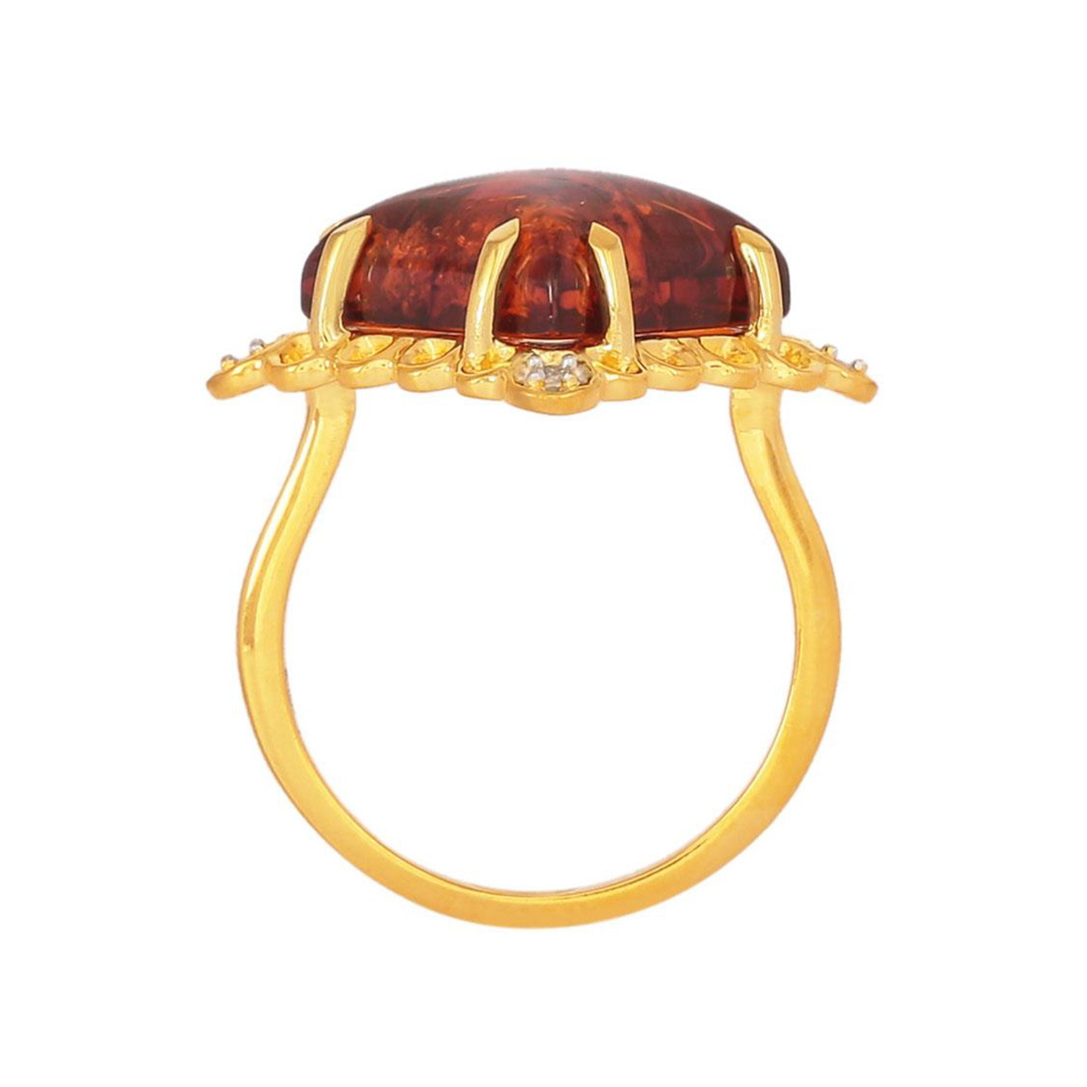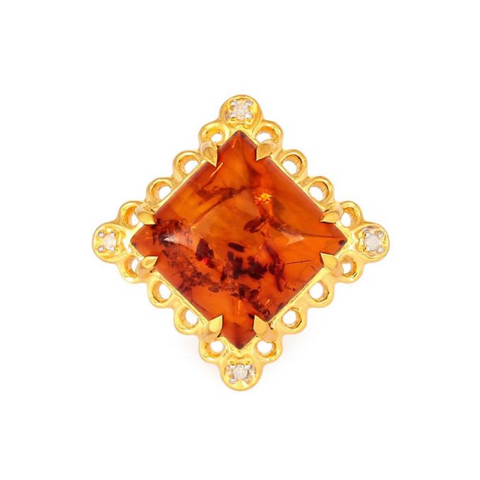 Amber Ring with Diamond in Gold Plated Sterling Silver