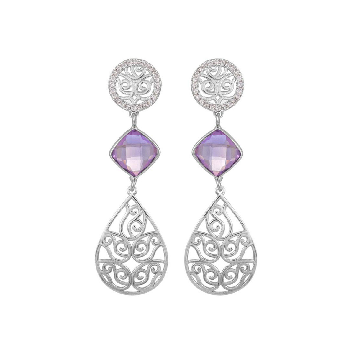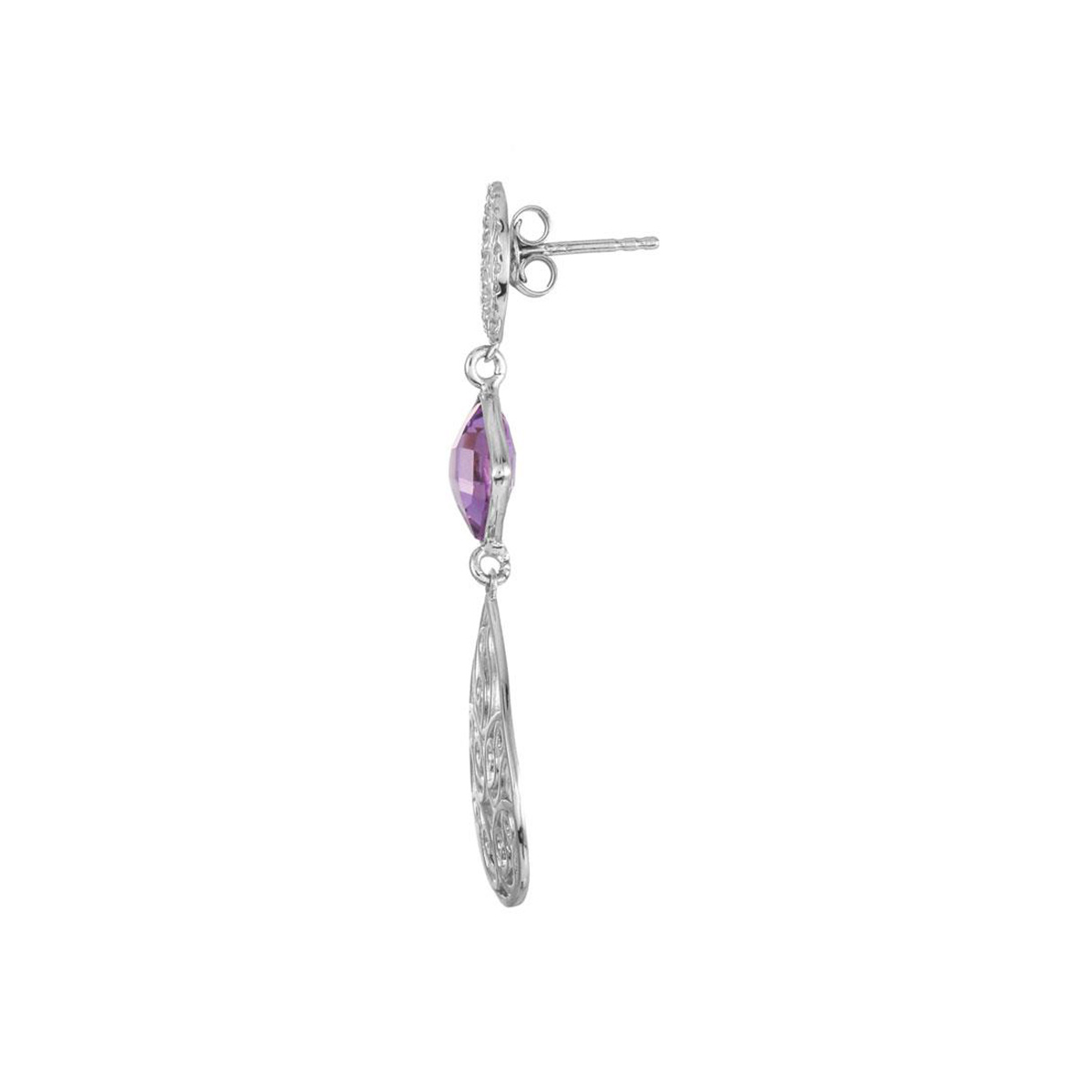 Amethyst Earrings with White Topaz in Rhodium Flash Sterling Silver
