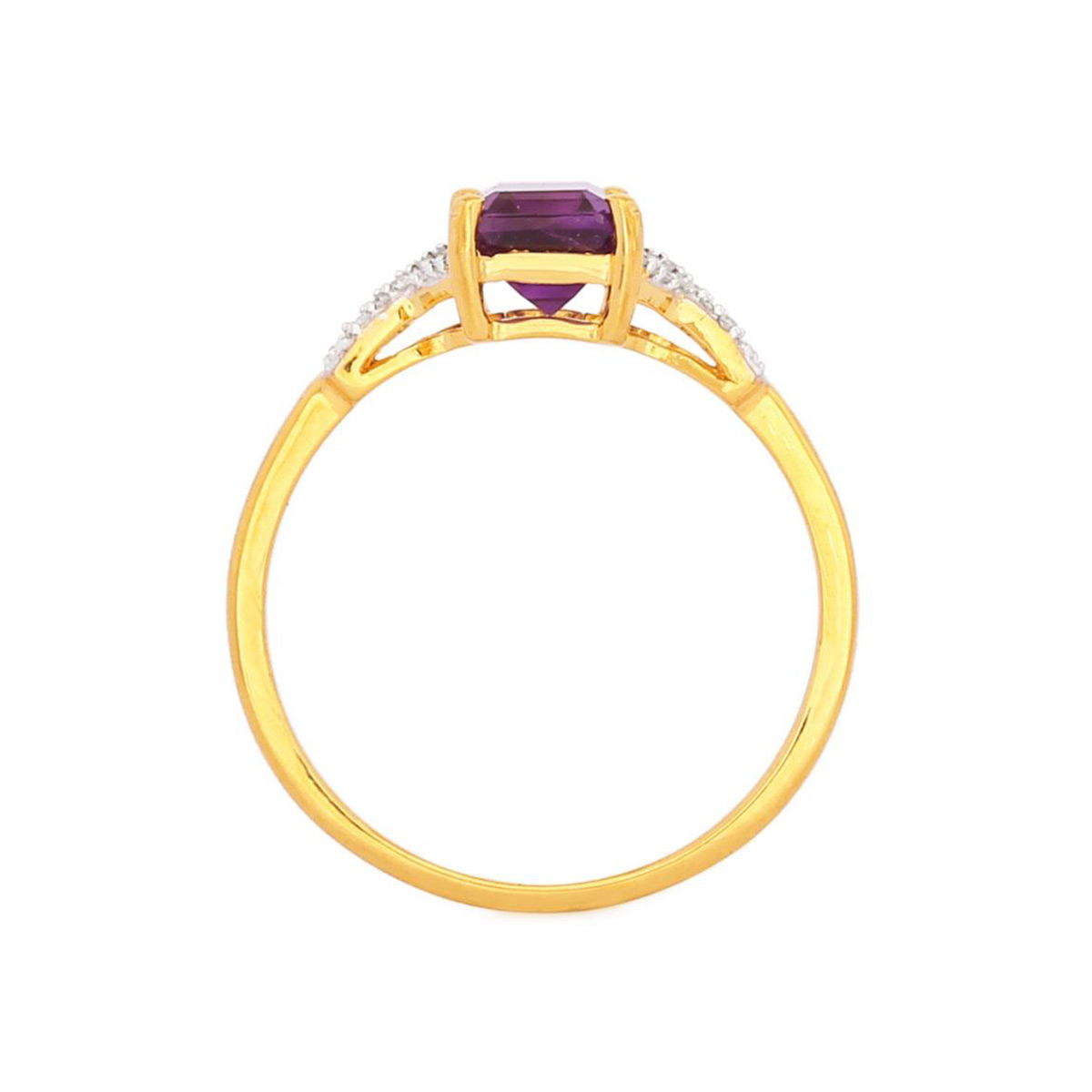 Amethyst Ring with Diamond in Gold Plated Sterling Silver