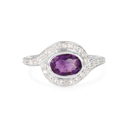 Amethyst Ring with White Topaz in Rhodium Flash Sterling Silver