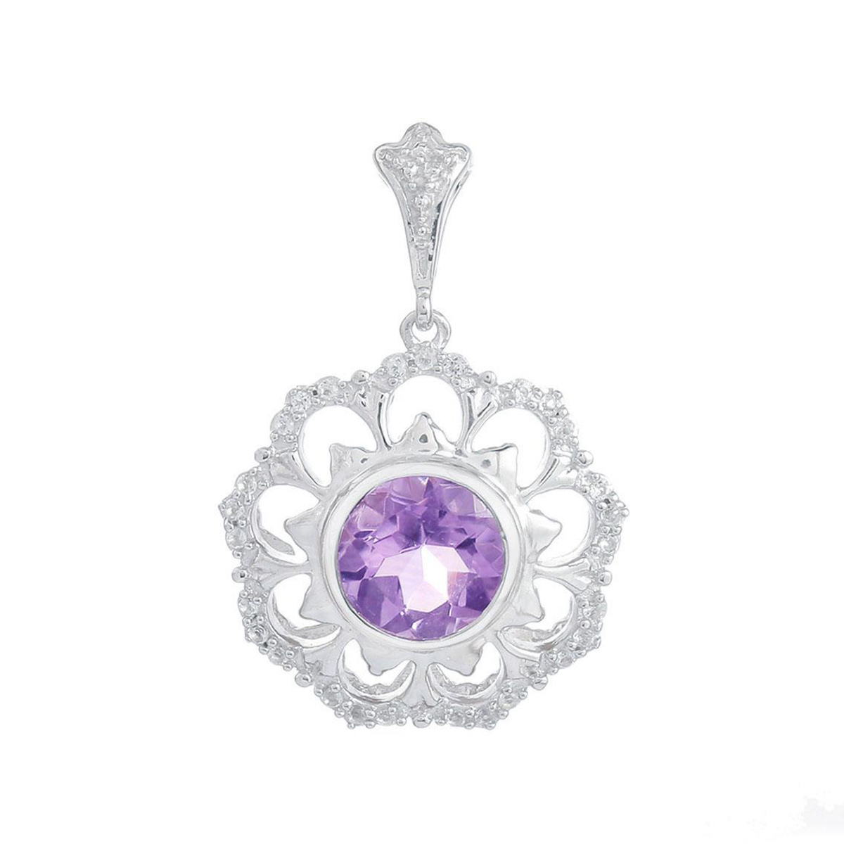 Amethyst & White Topaz Pendant in Rhodium Flash Sterling Silver