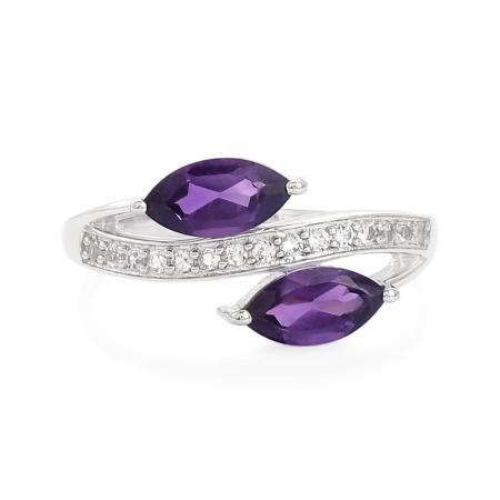 Amethyst & White Topaz Ring in Rhodium flash Sterling Silver