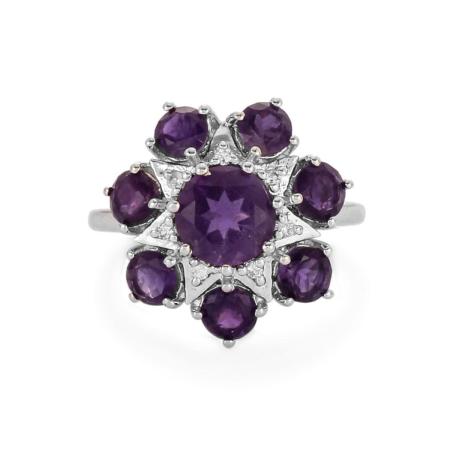 Amethyst & White Topaz Ring in Rhodium Flash Sterling Silver