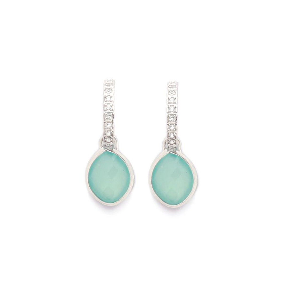 Aqua Chalcedony Earrings with White Topaz in Rhodium Flash Sterling Silver