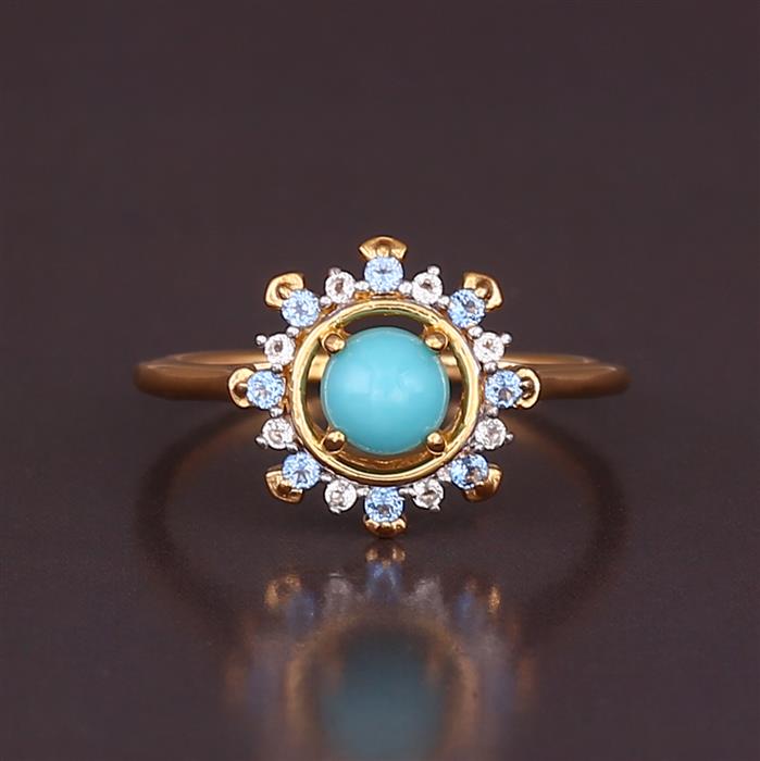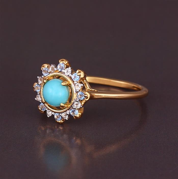 Arizona Turquoise Ring with True Blue Topaz in Gold Plated Sterling Silver