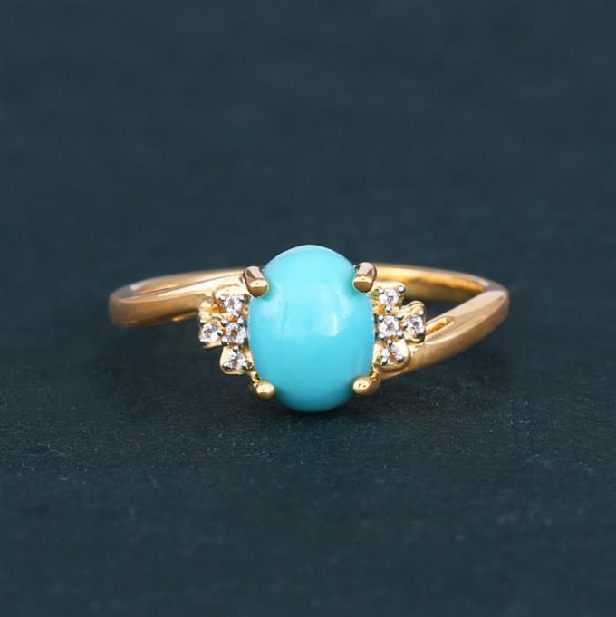 Arizona Turquoise Ring with White Topaz in Gold Plated Sterling Silver