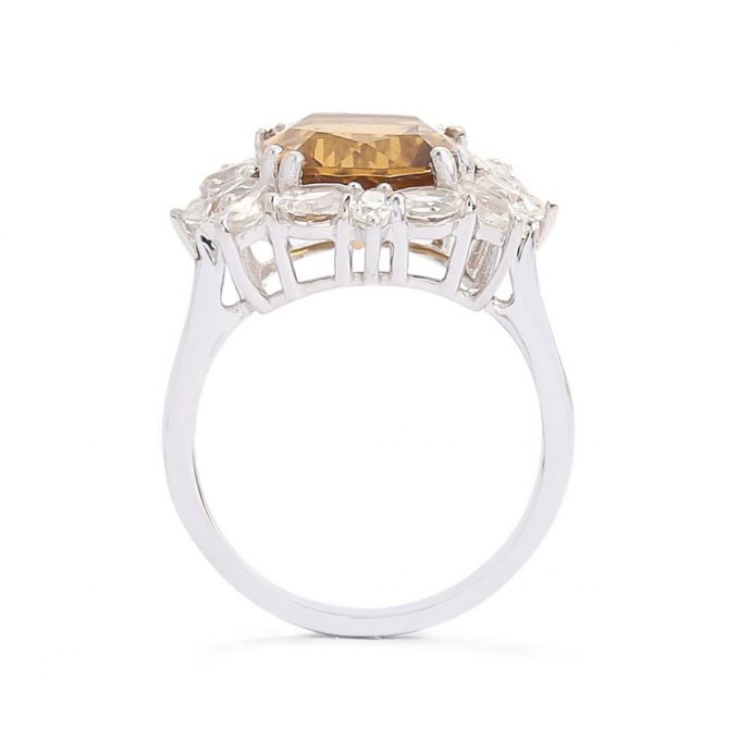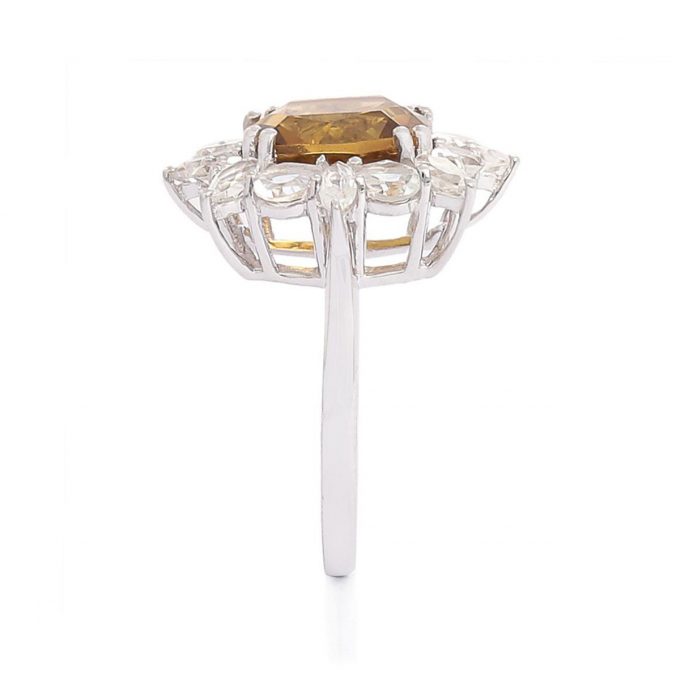 Beer Quartz Ring with White Topaz in Rhodium Flash Sterling Silver