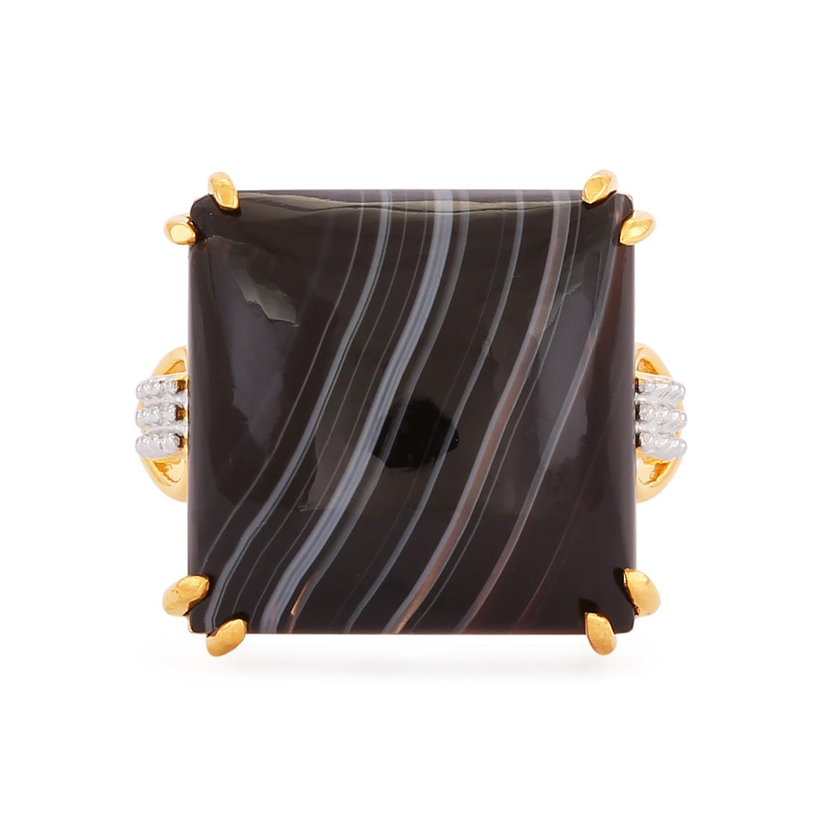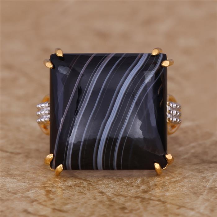 Black Line Onyx Ring in Gold Plated Sterling Silver