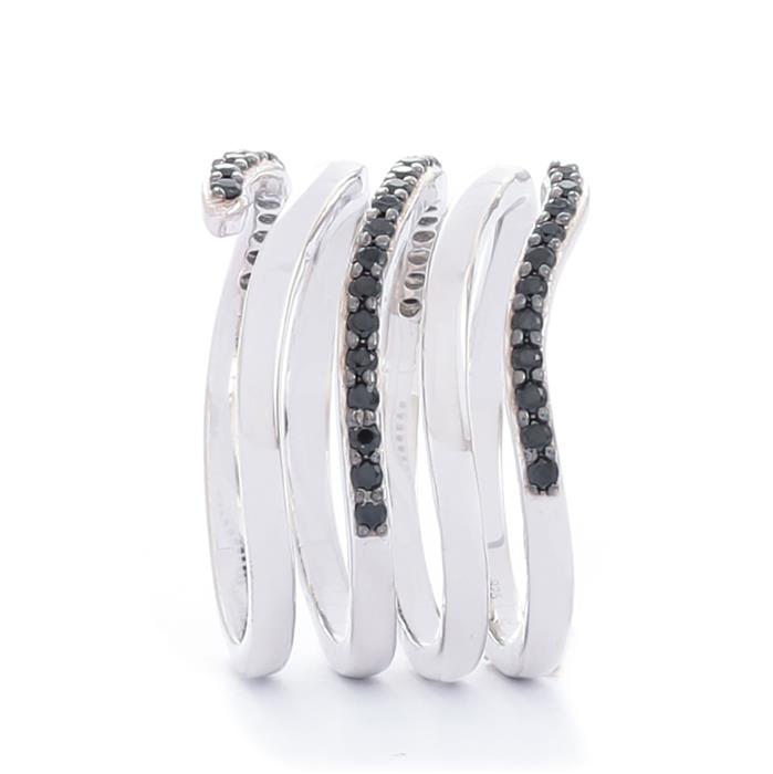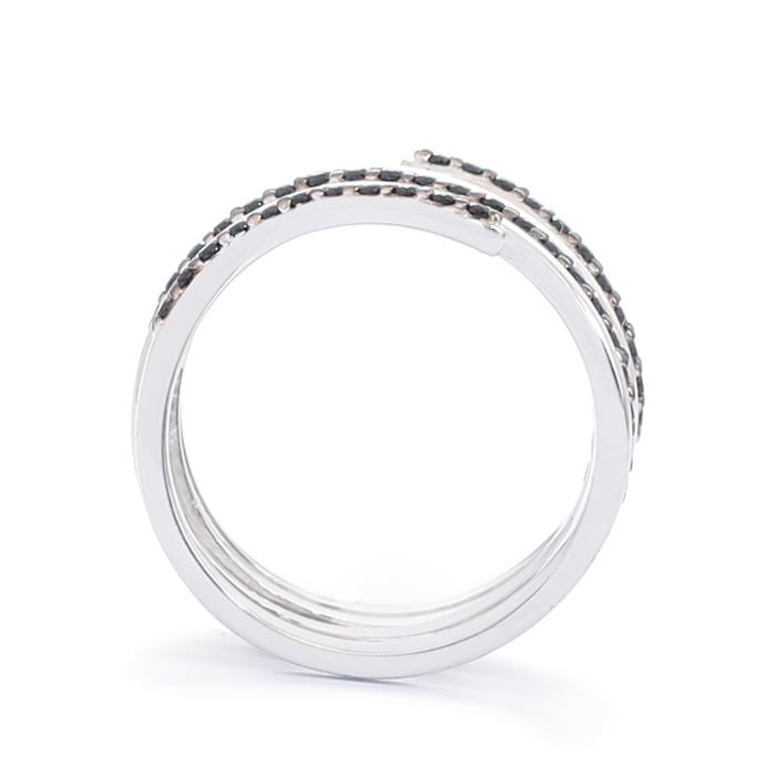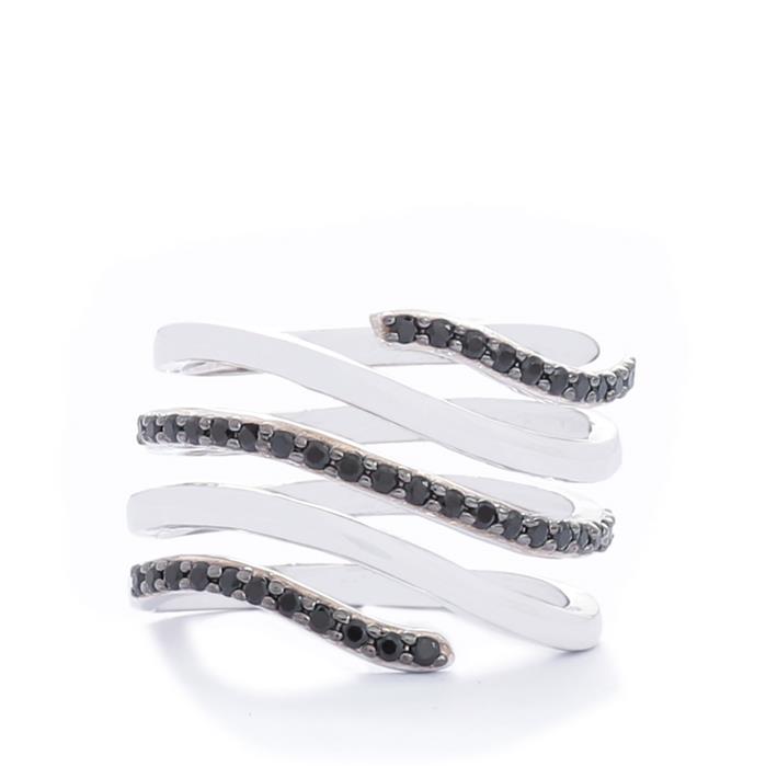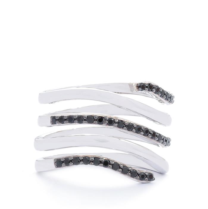 Black Spinel Ring in Rhodium Flash Sterling Silver