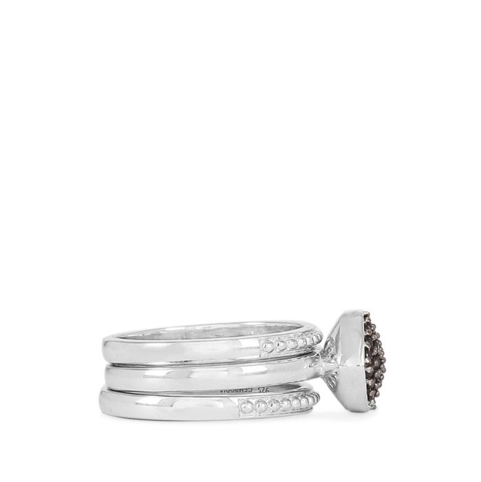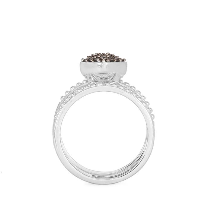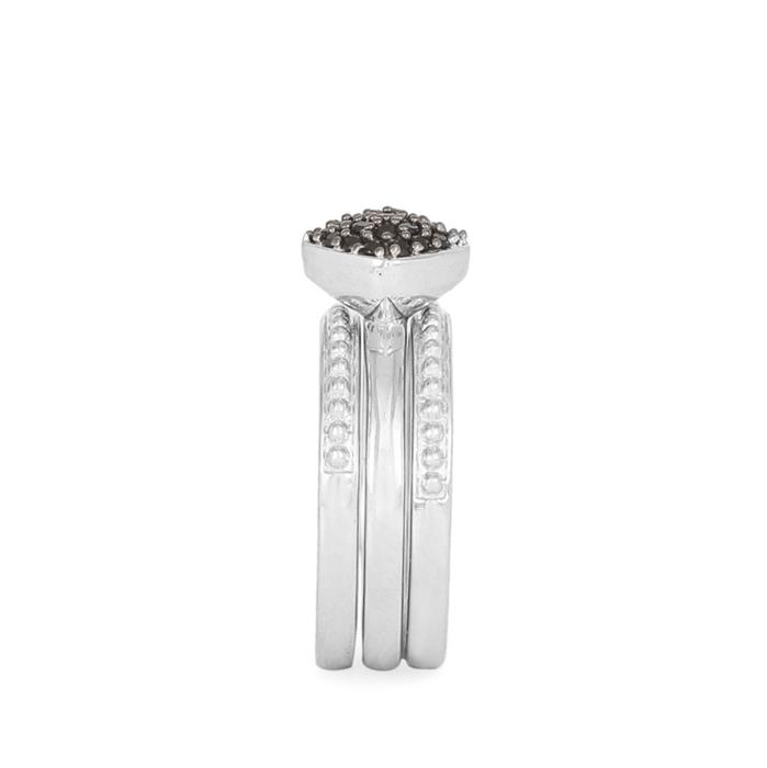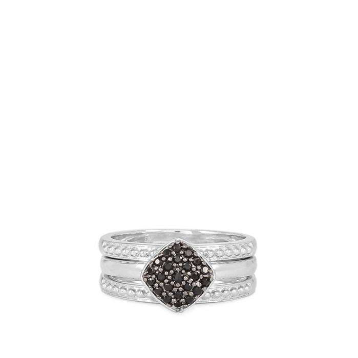 Black Spinel Stacker Ring in Rhodium Flash Sterling Silver