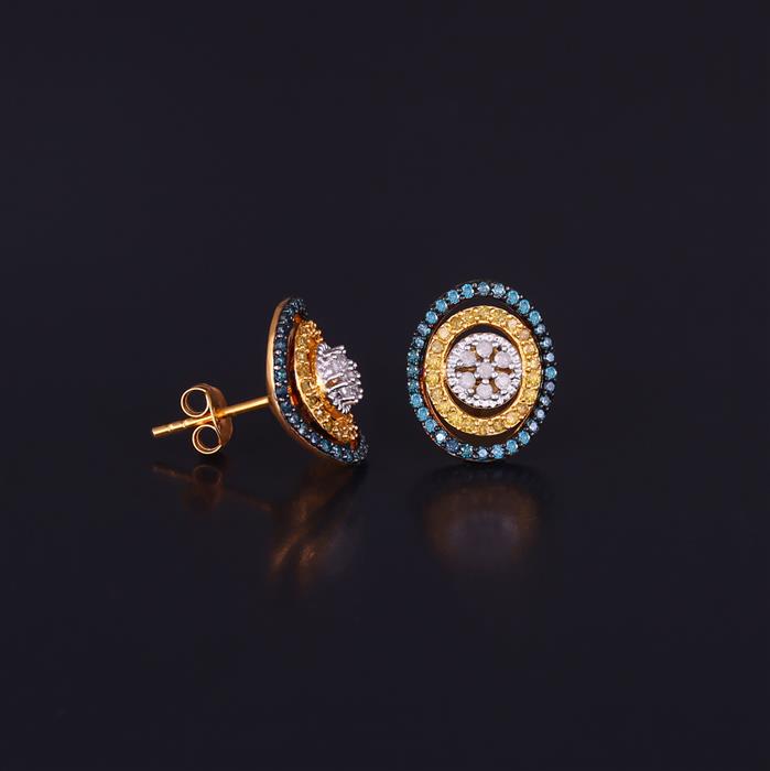Blue Diamond Earrings in Gold Plated Sterling Silver