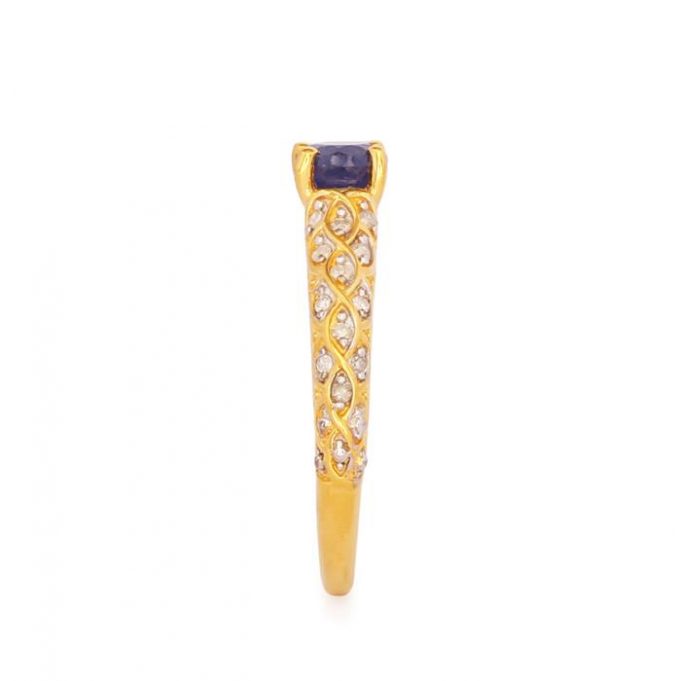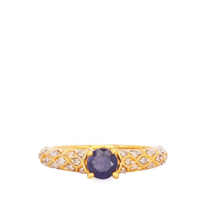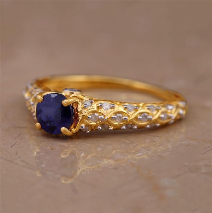 Blue Sapphire Ring with Diamond in Gold Plated Sterling Silver
