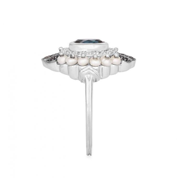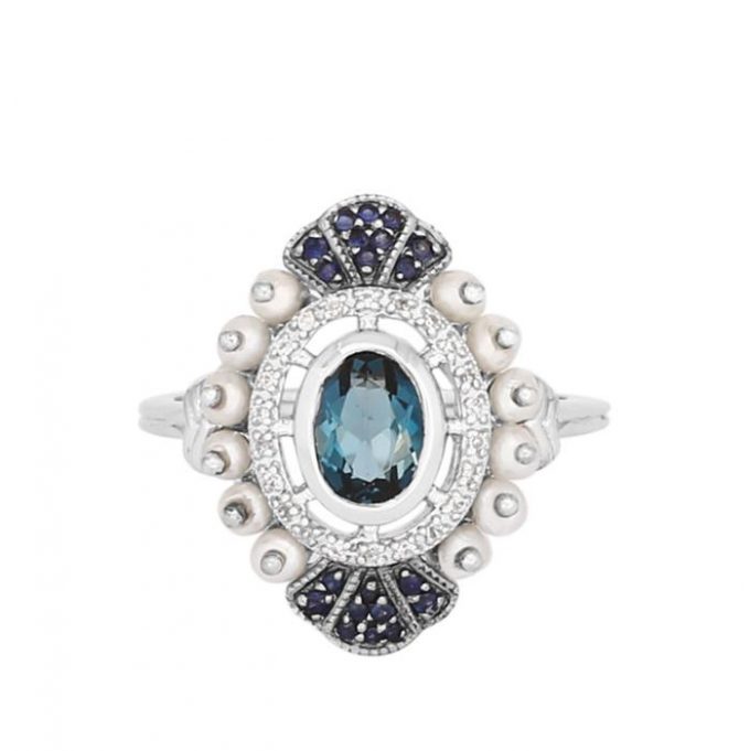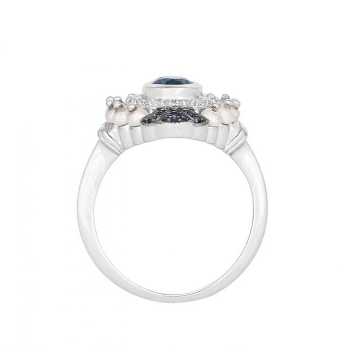 Blue Sapphire Ring with Multi-Gemstone in Rhodium Flash Sterling Silver