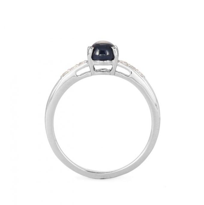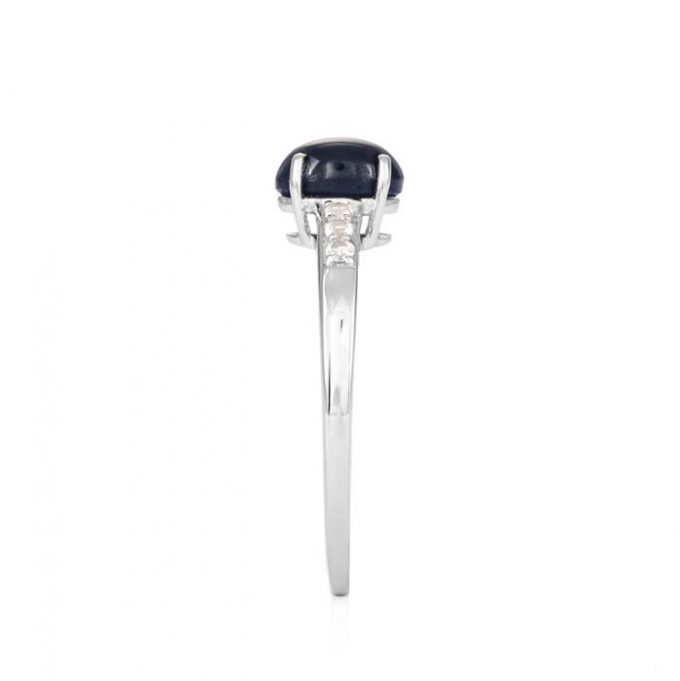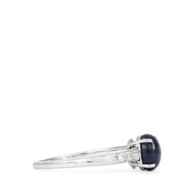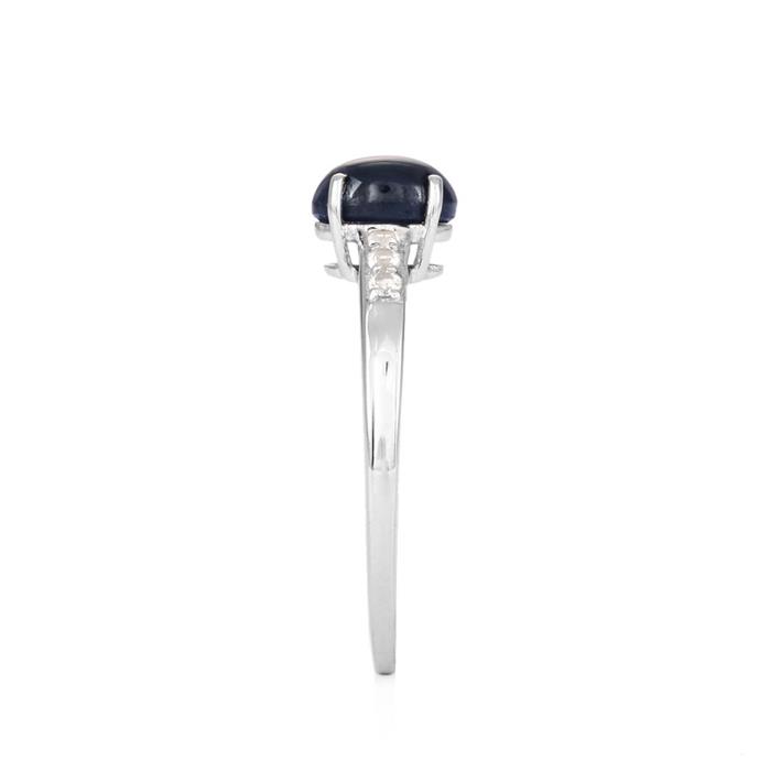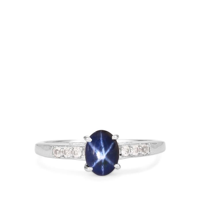 Blue Star Sapphire Ring with White Topaz in Rhodium Flash Sterling Silver