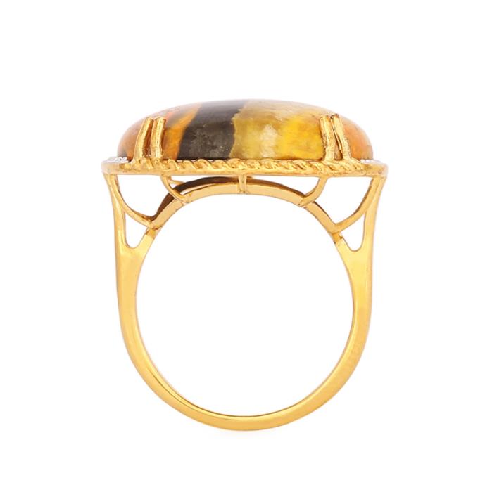 Bumble Bee Jasper Ring in Gold Plated Sterling Silver