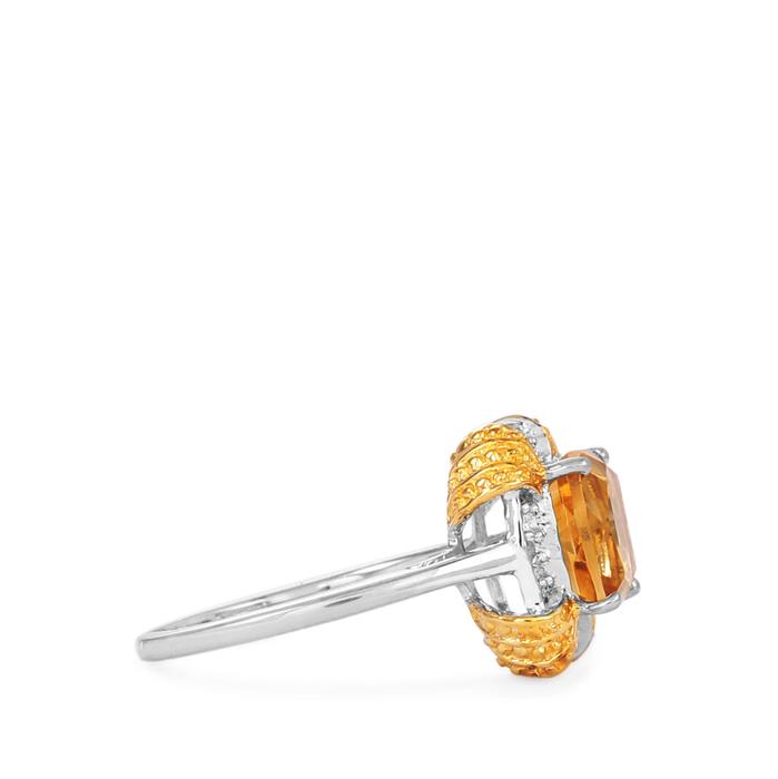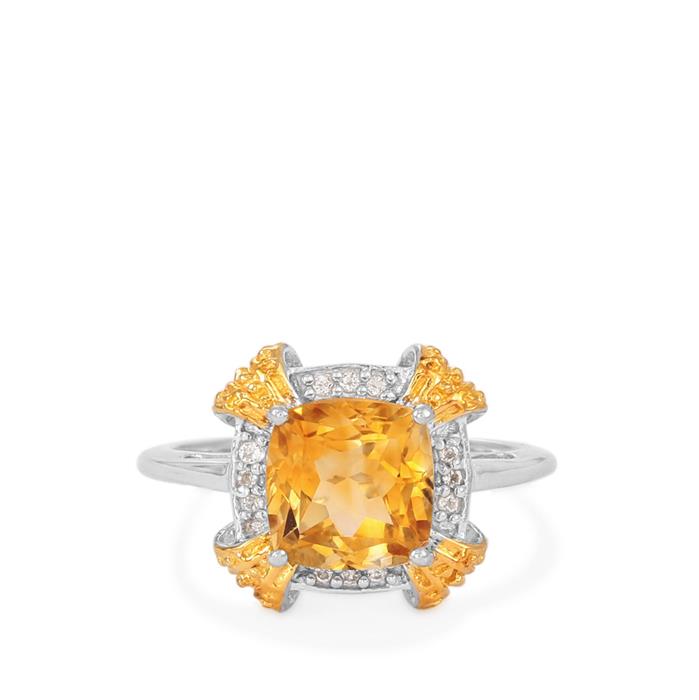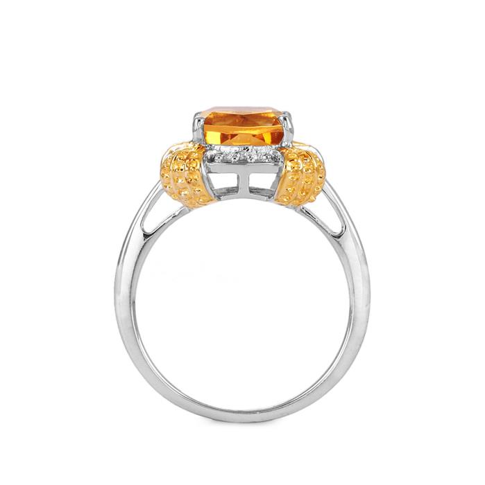 Citrine Ring with White Topaz in Two Tone Sterling Silver