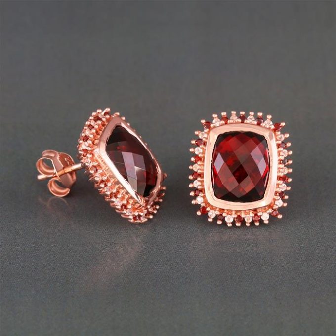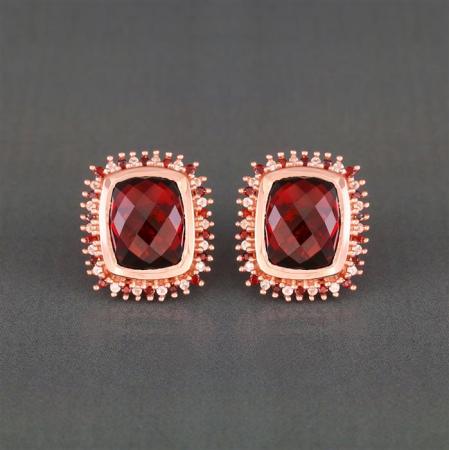 Cuamba Garnet Earrings with Natural Zircon in Rose Gold Plated Sterling Silver