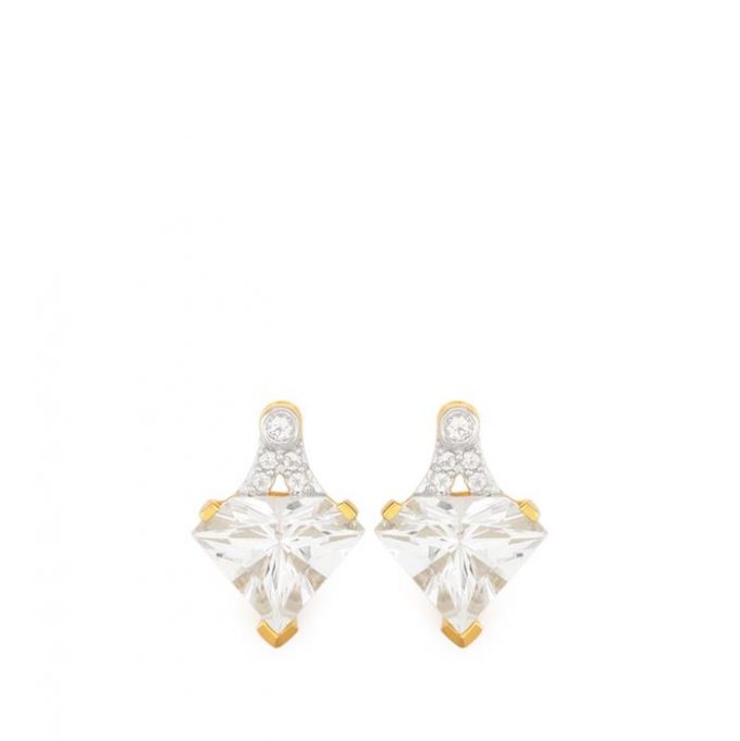 Cullinan Cut Earrings with White Quartz & White Topaz in G.P. 925 Silver