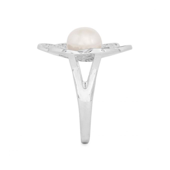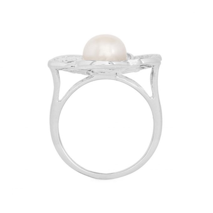 Cultured Pearl Ring in Rhodium Flash Sterling Silver