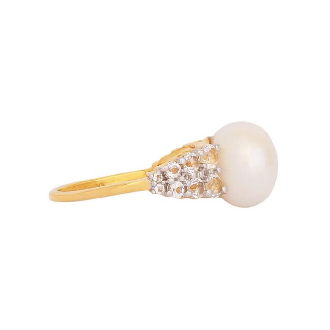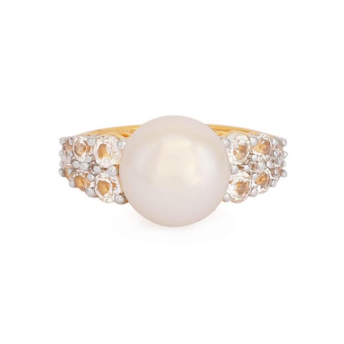 Cultured Pearl Ring with White Topaz in Gold Plated Sterling Silver