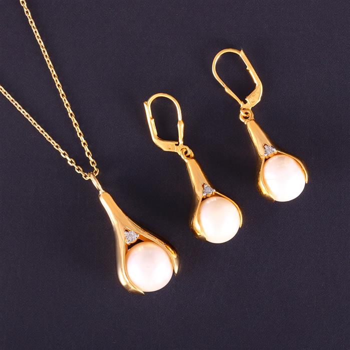 Diamond Earrings-Pendant Set in Gold Plated Sterling Silver