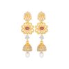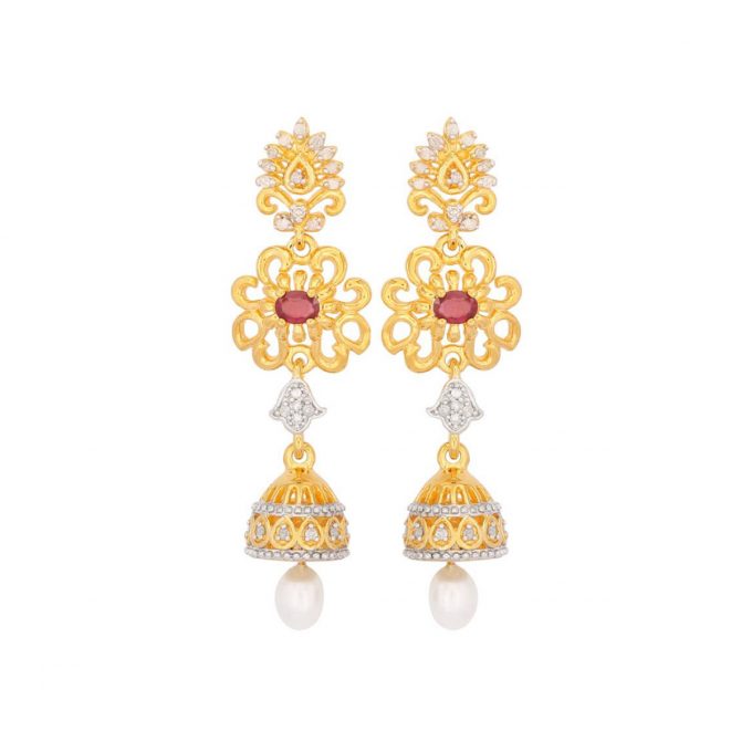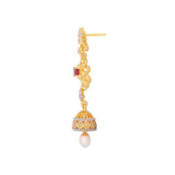 Diamond Earrings with Ruby & Cultured Pearl in Gold Plated Sterling Silver