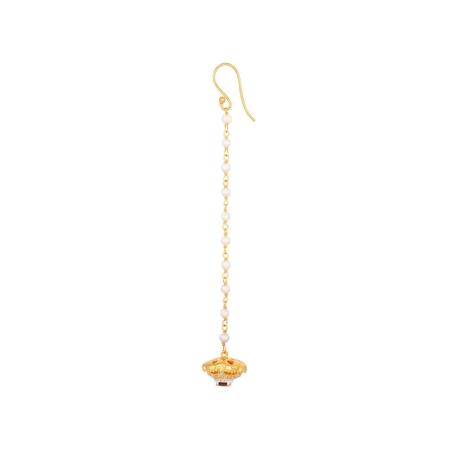 Diamond Maang Tika with Ruby & Cultured Pearl in Gold Plated Sterling Silver