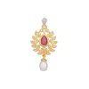Diamond Pendant with Cultured Pearl & Thai Ruby in Gold Plated Sterling Silver.