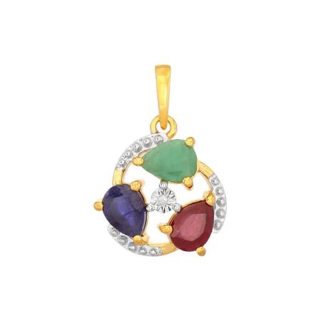 Diamond Pendant with Ruby, Emerald & Blue Sapphire in Gold Plated Sterling Silver