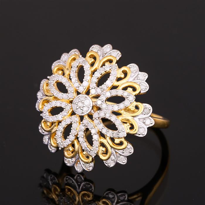 Diamond Ring in Gold Plated Sterling Silver