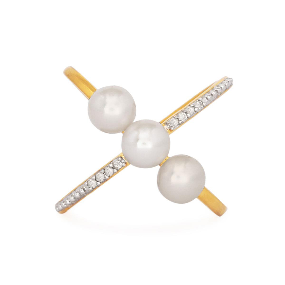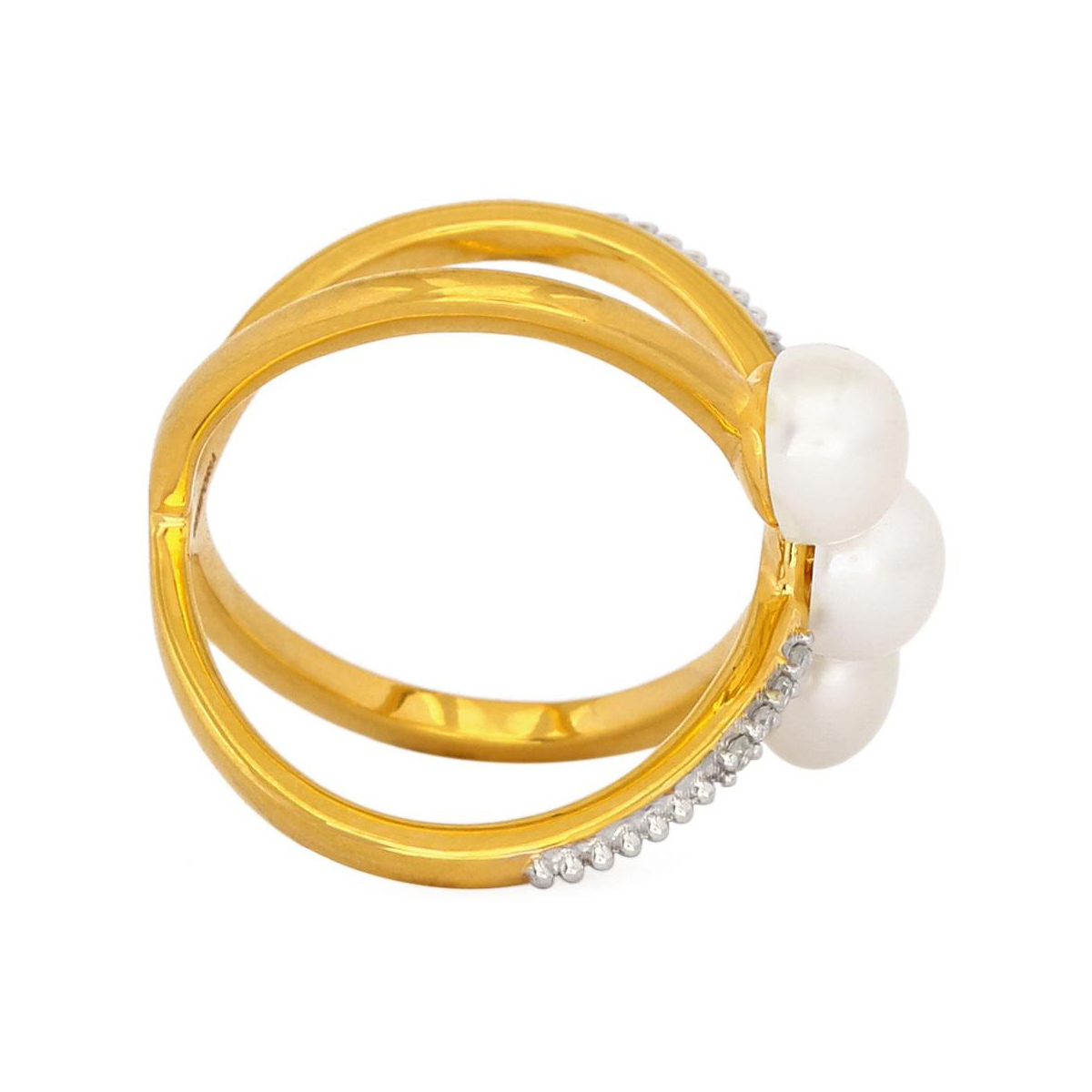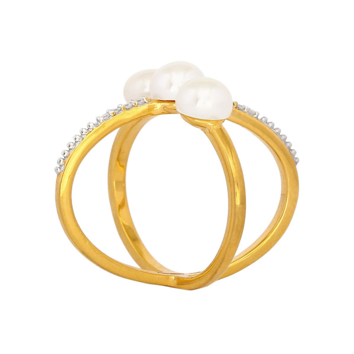 Diamond Ring with Cultured Pearl in Gold Plated Sterling Silver