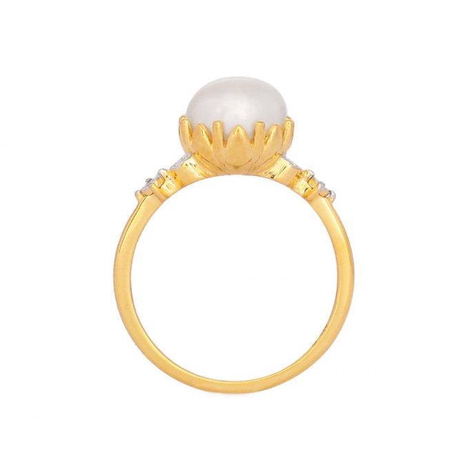 Diamond Ring with Cultured Pearl in Gold Plated Sterling Silver (Miracle Plate)