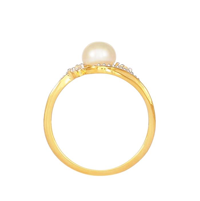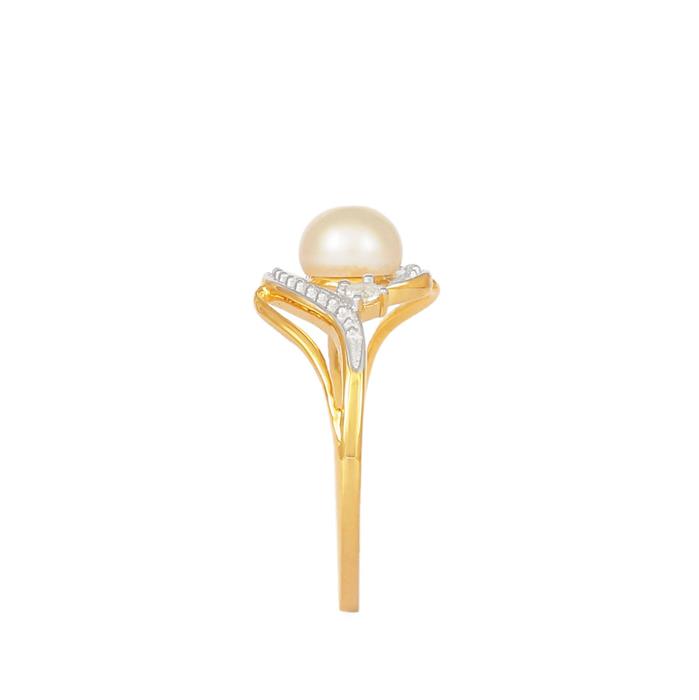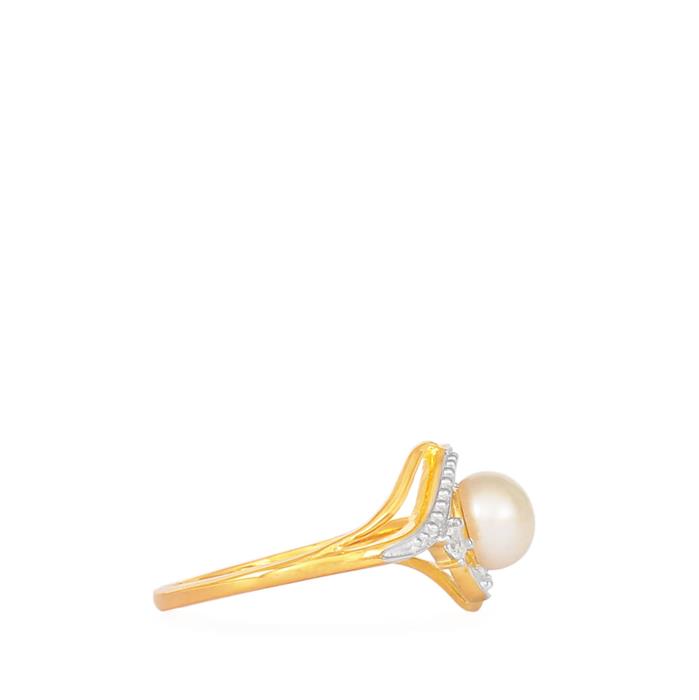 Diamond Ring with Cultured Pearl in Gold Plated Sterling Silver (Miracle Plate)