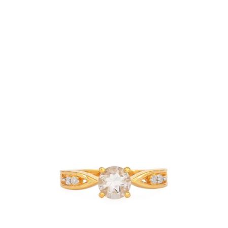 Diamond Ring with White Quartz in Gold Plated Sterling Silver