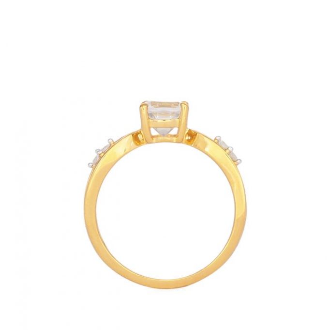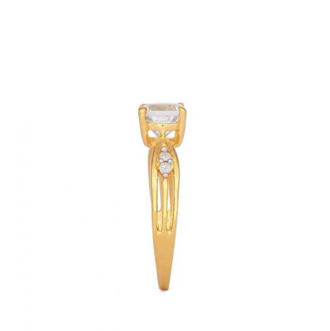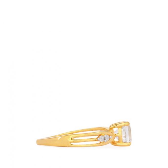 Diamond Ring with White Quartz in Gold Plated Sterling Silver