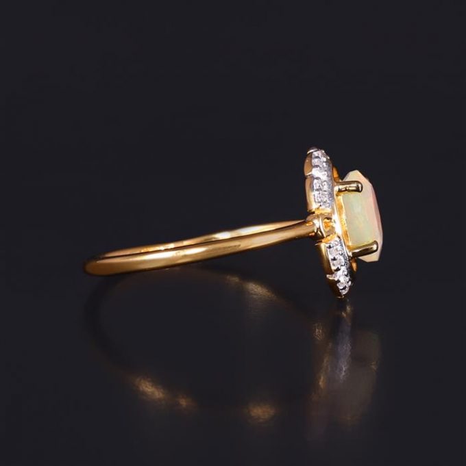 Ethiopian Opal Ring with Diamond in Gold Plated Sterling Silver