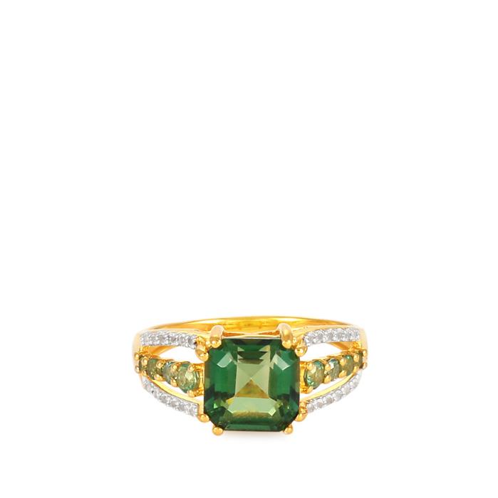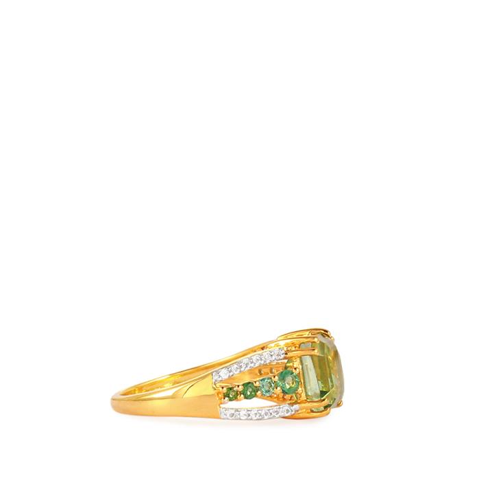 Fern Green Quartz Ring with Tsavorite Topaz in Gold Plated Sterling Silver