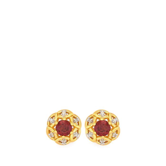 Garnet Earrings with Diamond in Gold Plated Sterling Silver