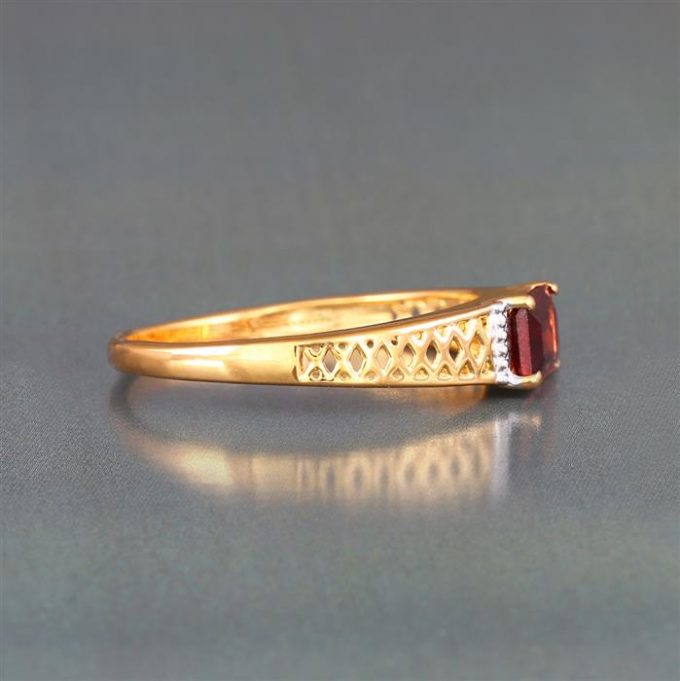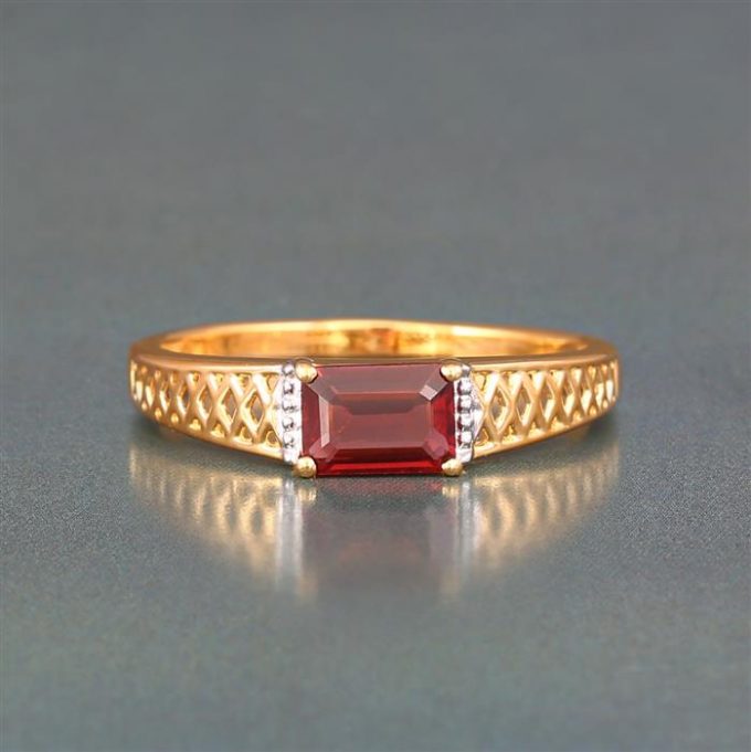 Garnet Mens Ring in Gold Plated Sterling Silver