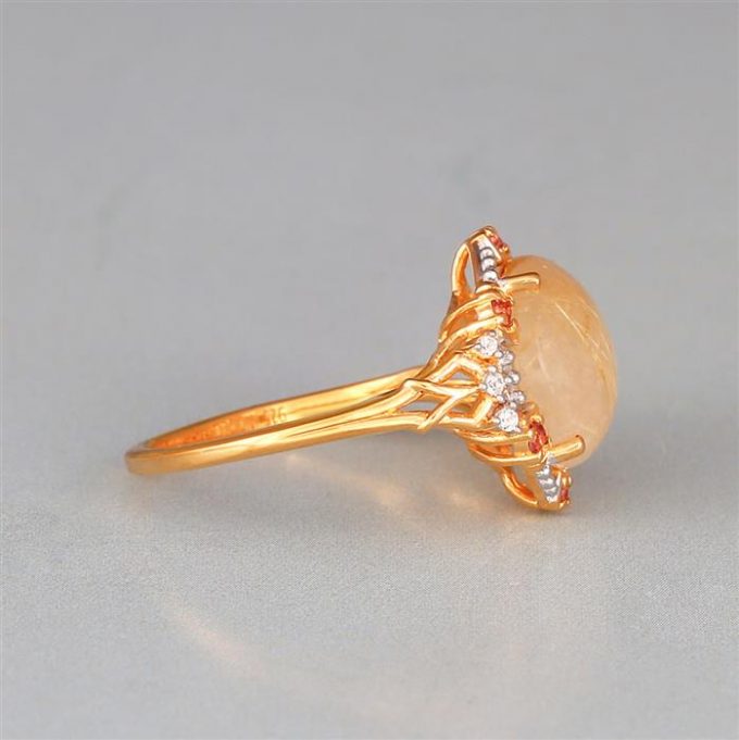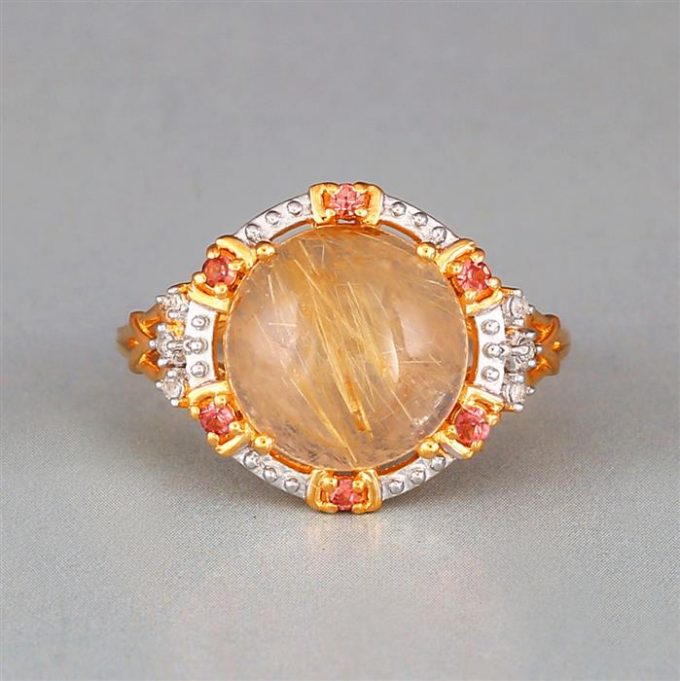Golden Rutile Ring with Garnet in Gold Plated Sterling Silver
