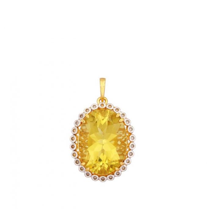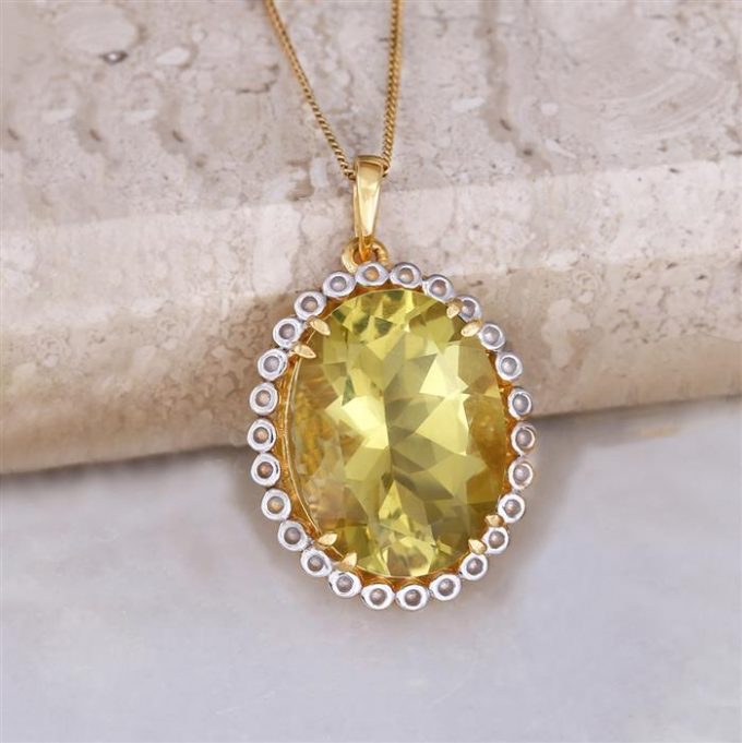 Green Gold Quartz Pendant in Gold Plated Sterling Silver