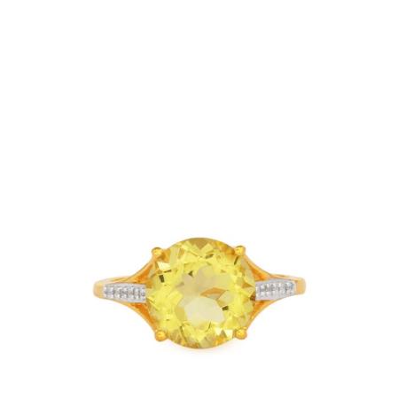 Green Gold Quartz Ring with White Topaz in Gold Plated Sterling Silver